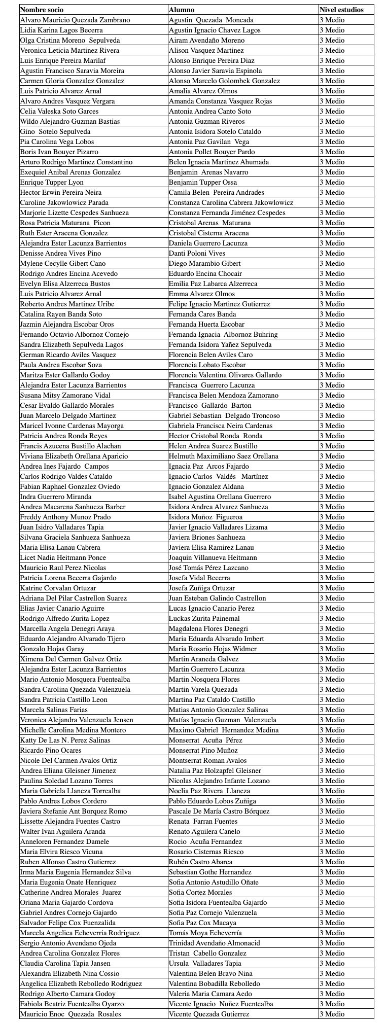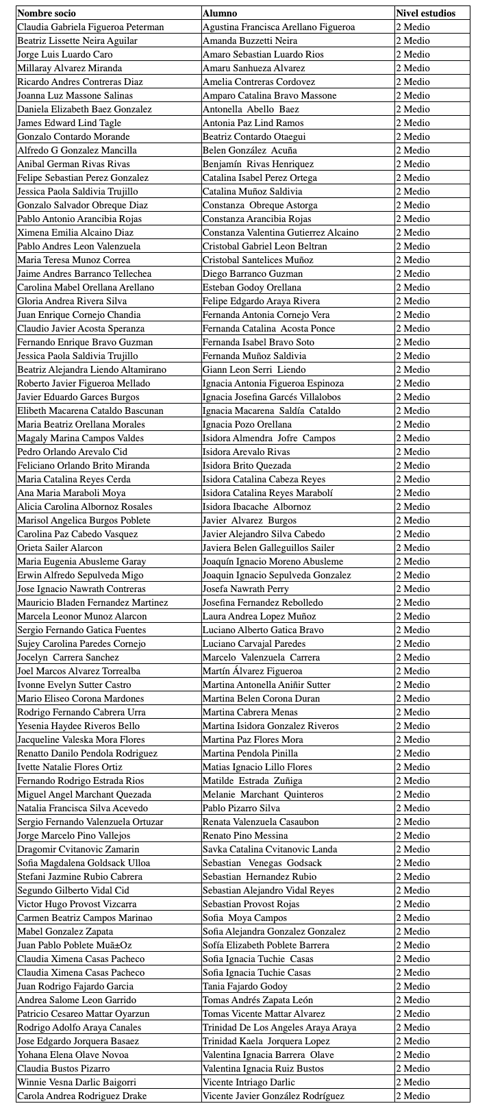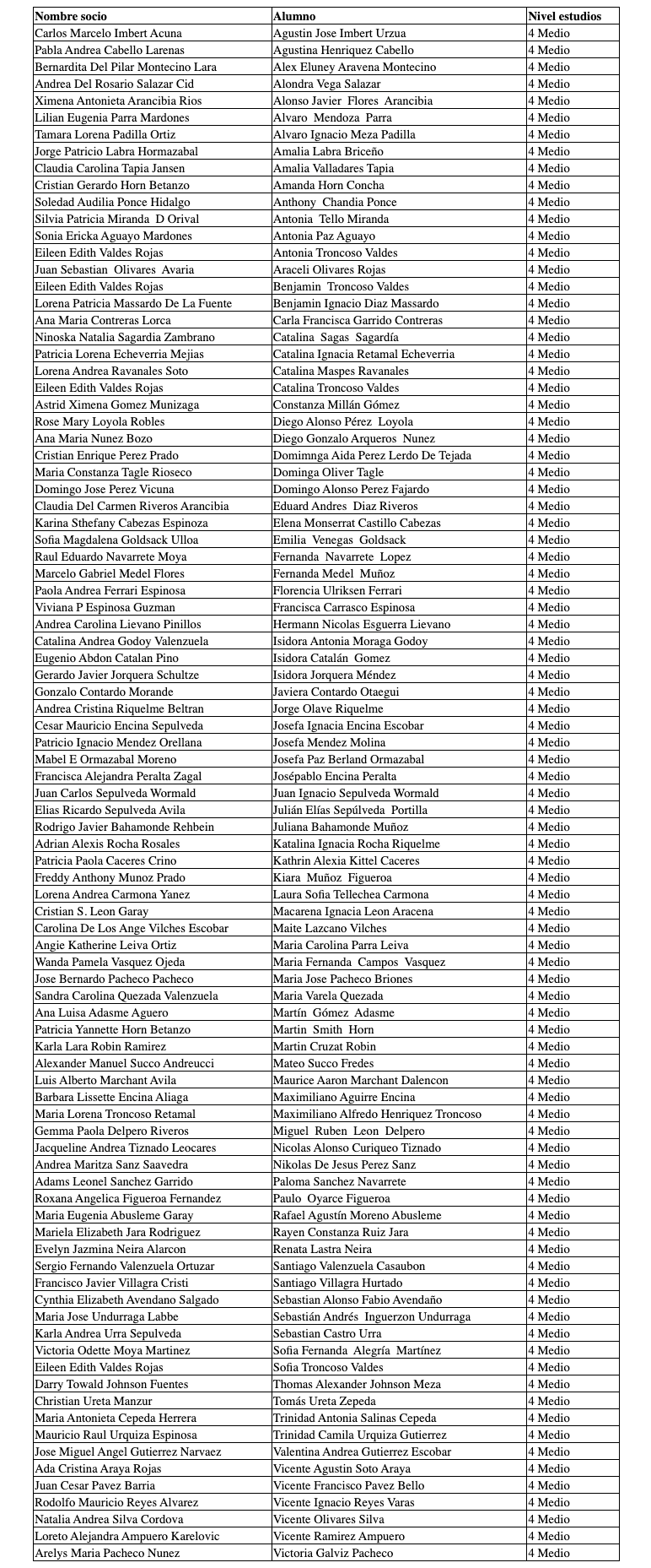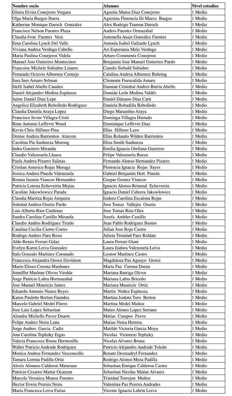 Listado de Ganadores por curso del año 2024, ordenados por el nombre del hijo(a).