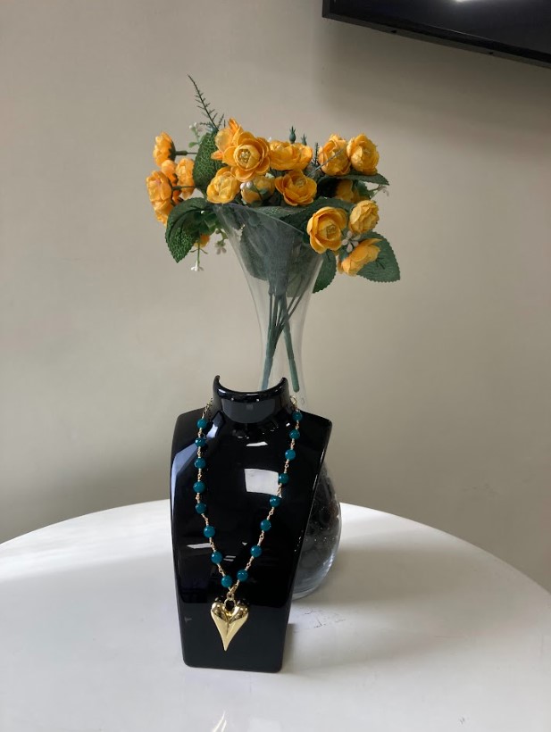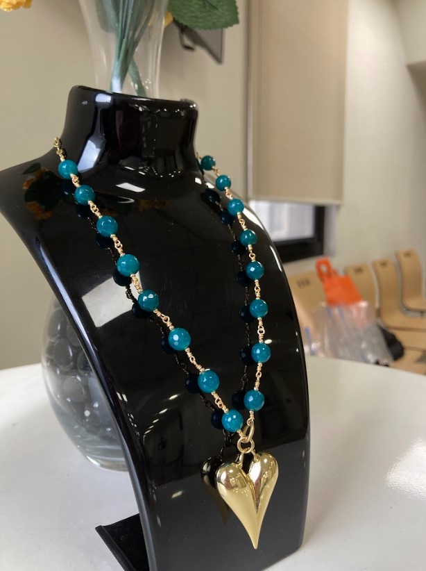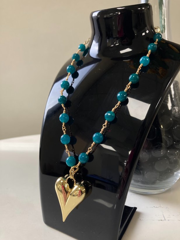 Collar Perla de rio y Baño de oro 50 cm Corazón Dorado (Perlas Verde)