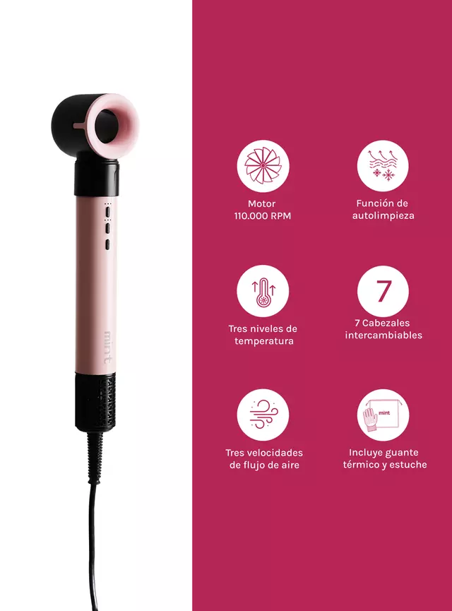 Mint Secador de Pelo Multistyler 7 en 1 1500W MHR-018 Rosado