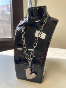 Collar Perla de rio y Baño de oro 50 cm Corazón Brillante (Perlas Blanca)